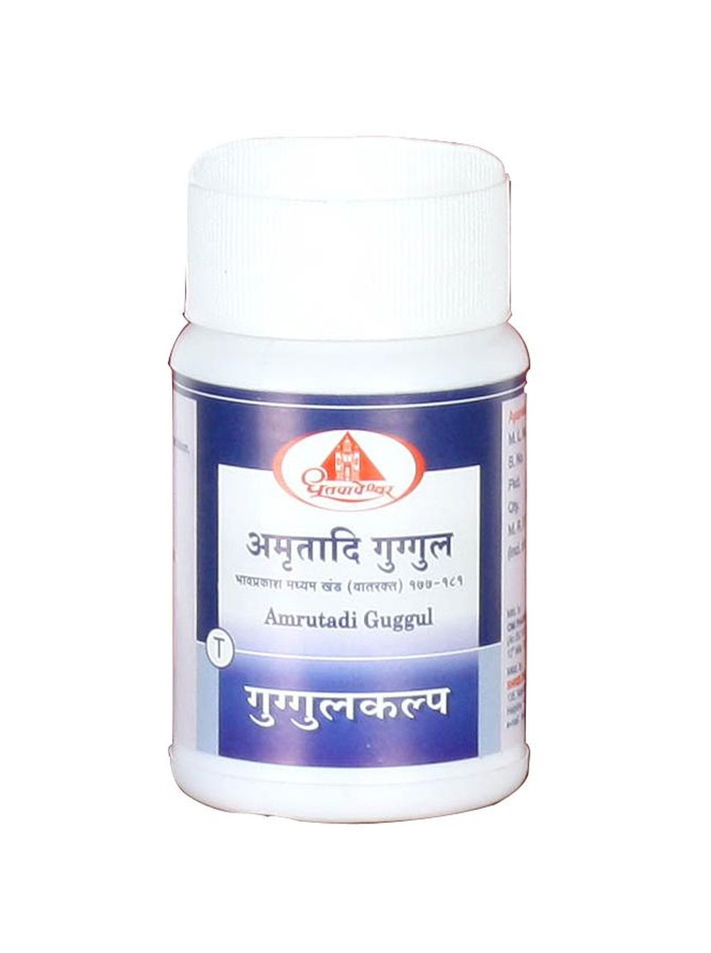 Состав Амритади Гуггул: Гуггул (смола) (Commiphora mukul), Гудучи (Tinospora cordifolia), Амла (Emblica officinalis), Бибхитаки (Terminalia bellirica), Харитаки (Terminalia chebula), Данти (Baliospermum montanum), Чёрный перец (Piper nigrum), Имбирь (Zingiber officinale), Пиппали (Pepper Longum), Эмбелия кислая (Embelia ribes), Коричник цейлонский (Cinnamomum zeylanicum).