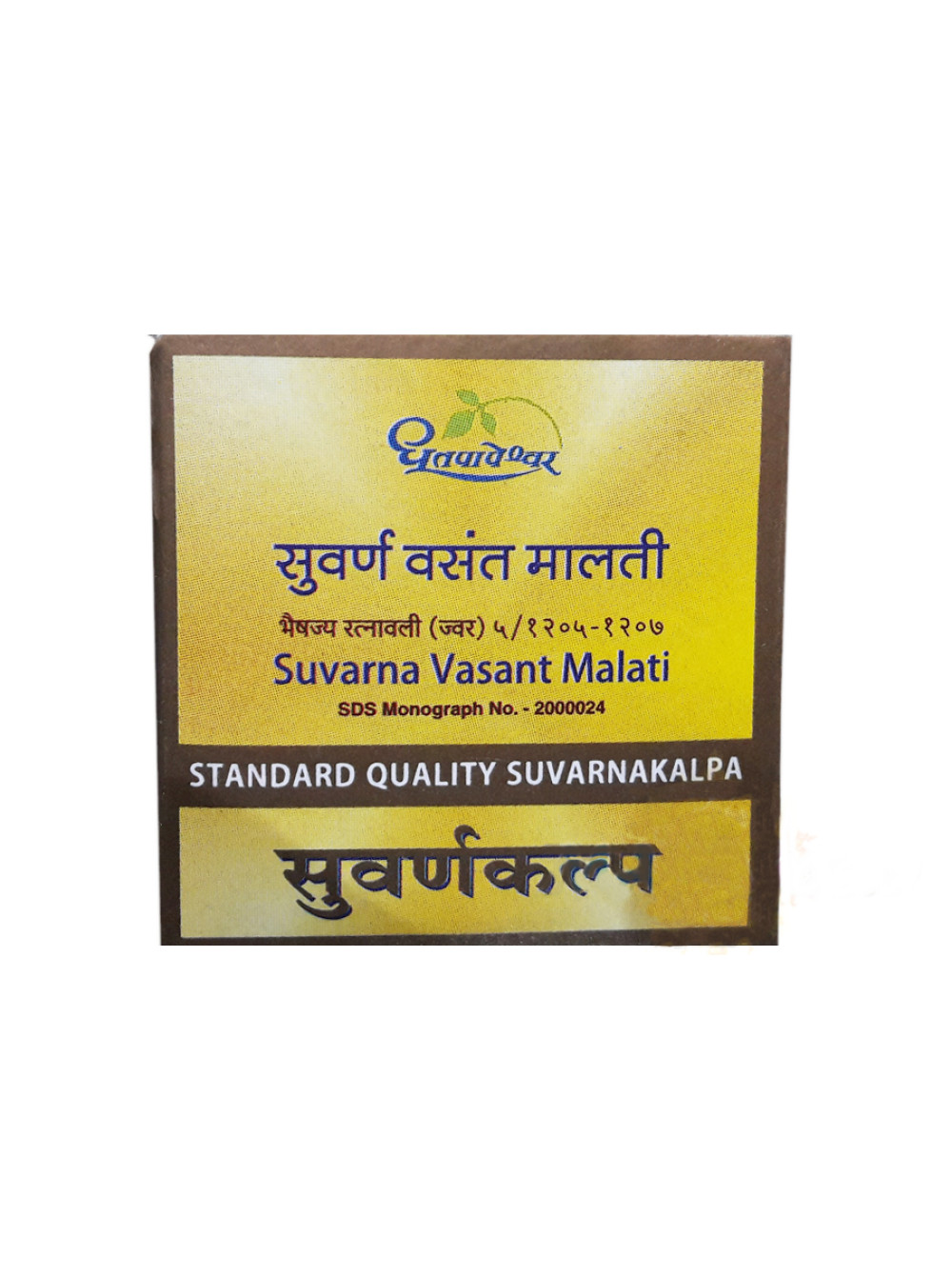 Состав: Svarna Bhasma, Mukta Bhasma, Darada, Maricha, Kharpara, lemon juice, Parada, Gandhaka Vyosha, Tamra bhasma, Ayas Bhasma.