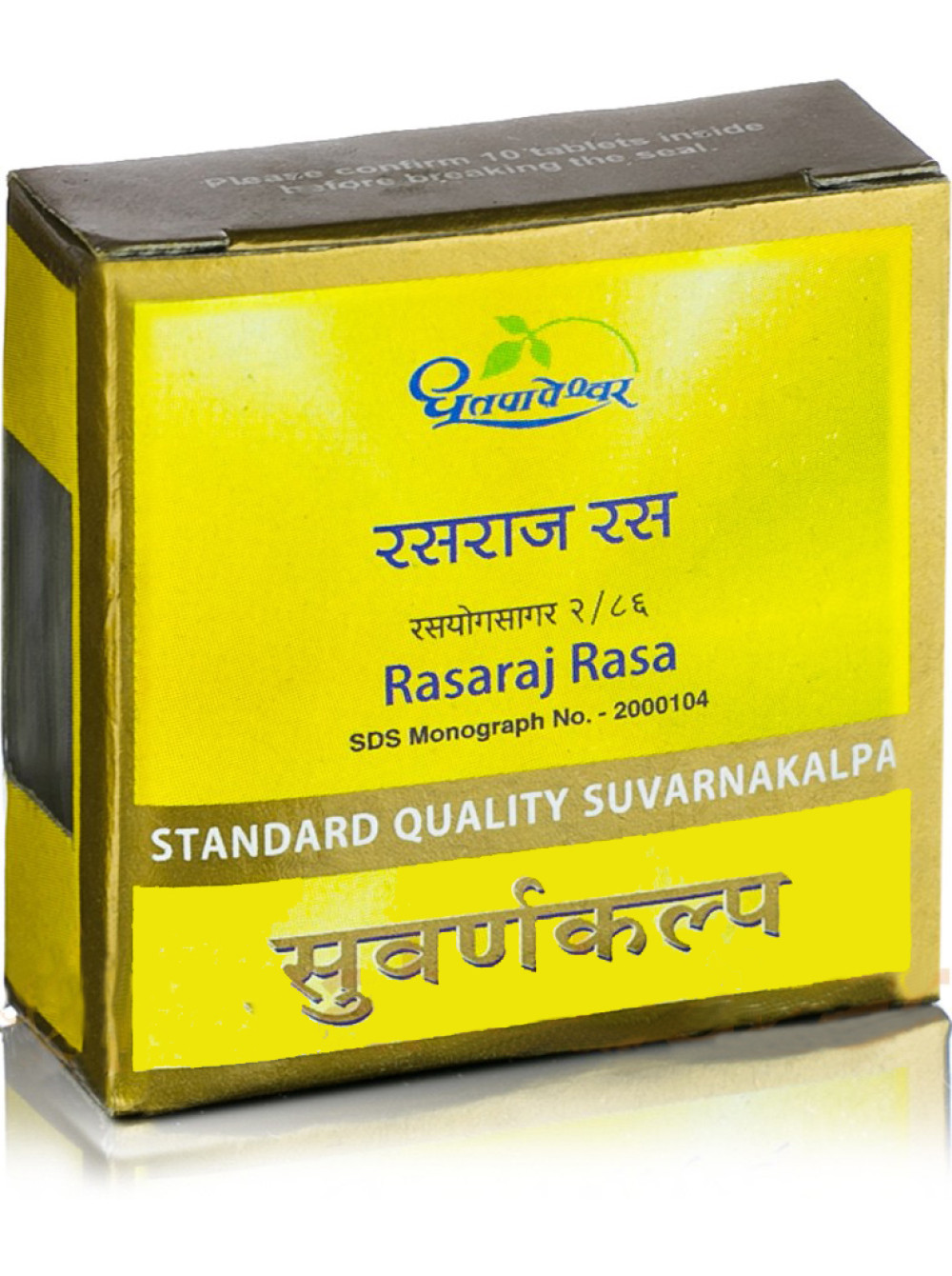 Состав Расарадж Раса: Каждая таблетка содержит: Раса Синдур (Rasa Sindur) - 34.483 мг, Суварна бхасма (Aurum) - 4.310 мг, Абхрак бхасма (Siliciolithos) - 8.621 мг, Железо очищенное (Lauh bhasma) - 2.155 мг, Раджата бхасма (Argentum) - 2.155 мг, Зола Олова (Vang bhasma) - 2.155 мг, Гвоздика (Syzygium aromaticum) - 2.155 мг, Мускатный орех (Myristica fragans) - 2.155 мг, Ашвагандха (Withania somnifera) - 4.310 мг; Консерванты: Бензоат натрия (Sodium benzoate).