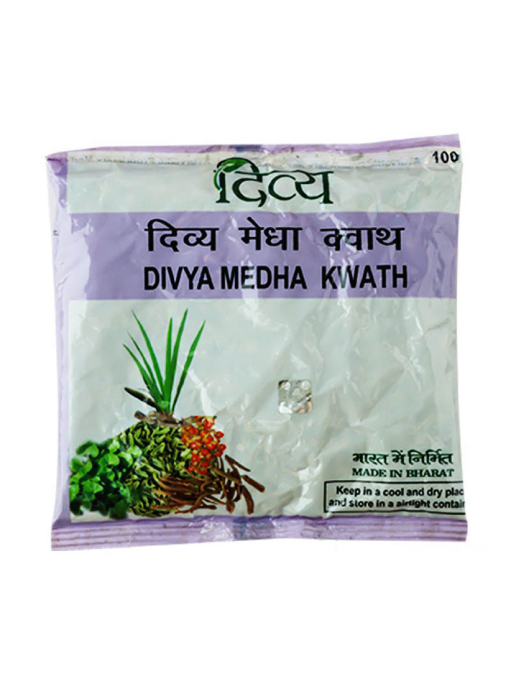 Состав Медха Кватх: в 100 грамм содержится: Готу кола (Centella asiatica) - 12.5 г, Шанкхапушпи (Convolvulus pluricaulis) - 12.5 г, Аир болотный (Acorus calamus) - 12.5 г, Лаванда стэхадская (Lavandula stoechas) - 12.5 г, Оносма (Onosma bracteatum) - 12.5 г, Древогубец метельчатый (Celastrus paniculatus) - 12.5 г, Ашвагандха (Withania somnifera) - 12.5 г, Фенхель (Foeniculum vulgare) - 12.5 г.