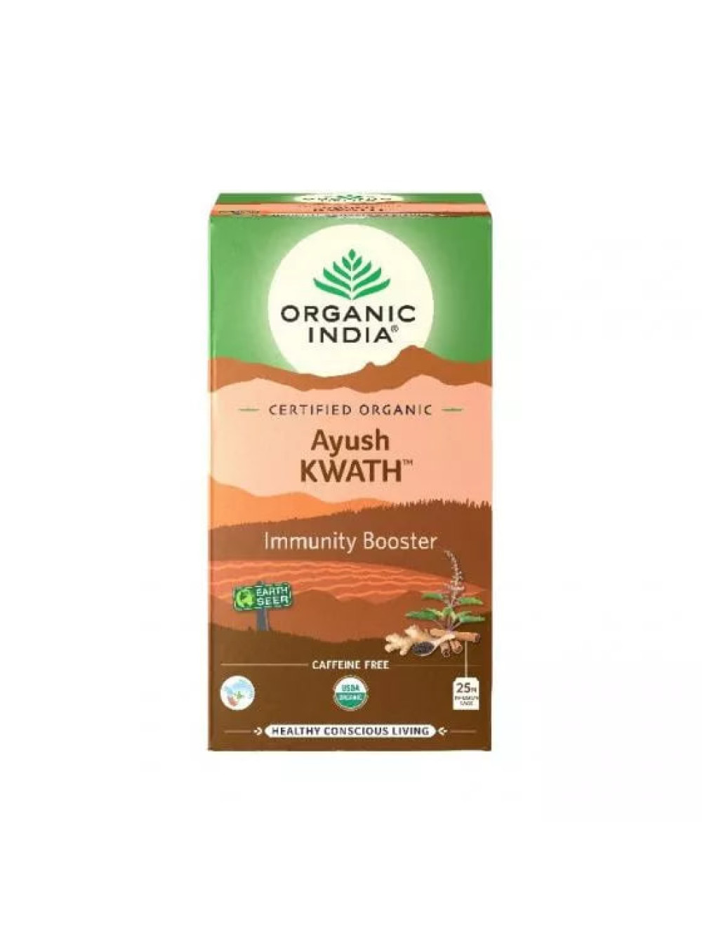Аюш Кватх от Organic India – это не просто чай, это древняя индийская формула для укрепления иммунитета и повышения жизненной энергии. Созданный на основе тщательно отобранных органических трав, этот напиток наполнит вас теплом и зарядит бодростью. В его состав входят четыре мощных компонента: священный базилик (тулси), имбирь, корица и черный перец – кладезь полезных веществ, известных своими целебными свойствами на протяжении тысячелетий.