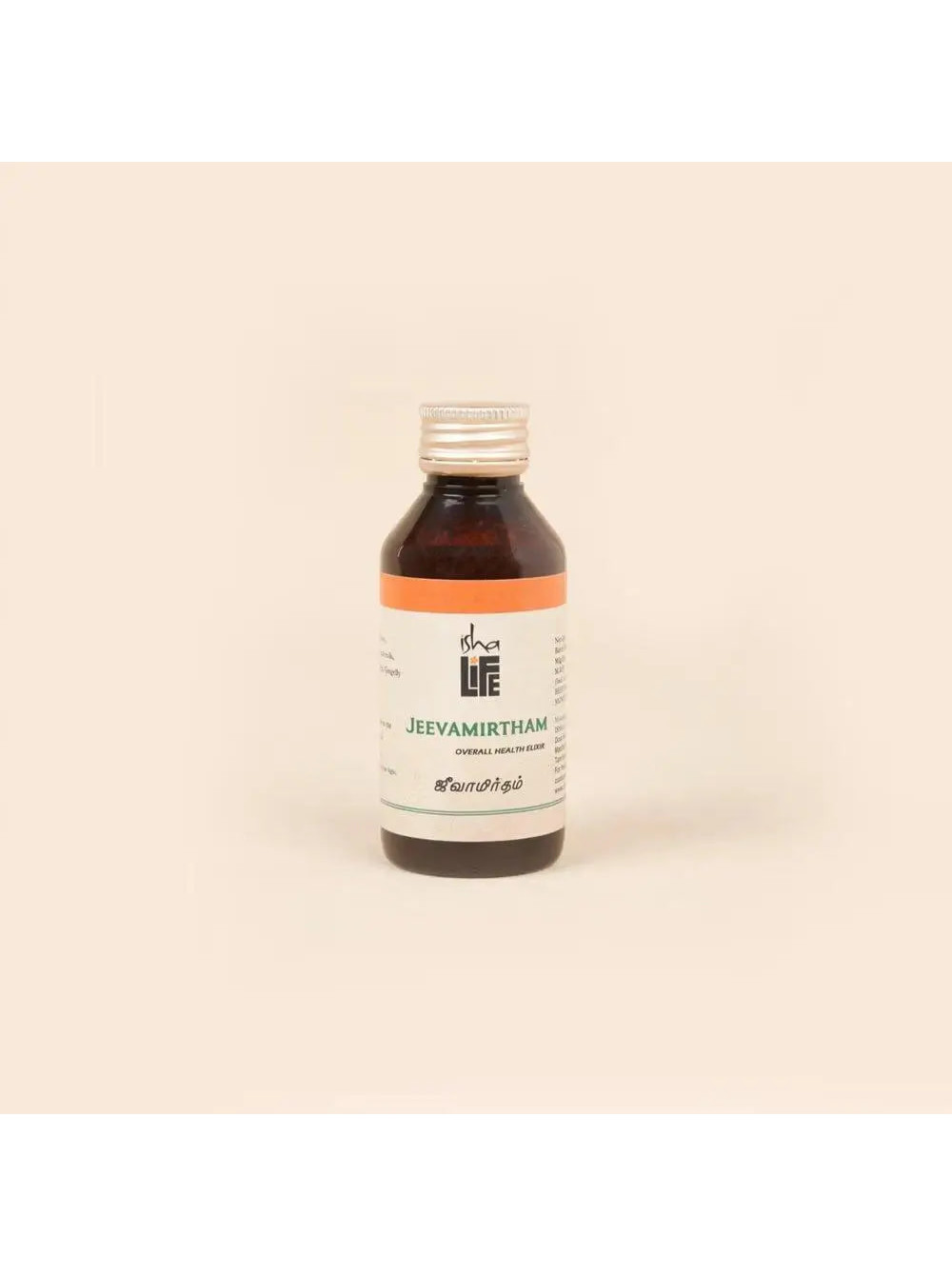 Сироп Дживамиртха, для сил и энергии, 100 мл, Иша Лайф; Jeevamirtham, 100 ml, Isha Life – это мощная травяная формула, передающаяся из поколения в поколение практикующих Сиддхов. Этот эликсир, созданный вручную небольшими партиями с использованием тщательно отобранных ингредиентов местного производства, известен своими целебными и омолаживающими свойствами.