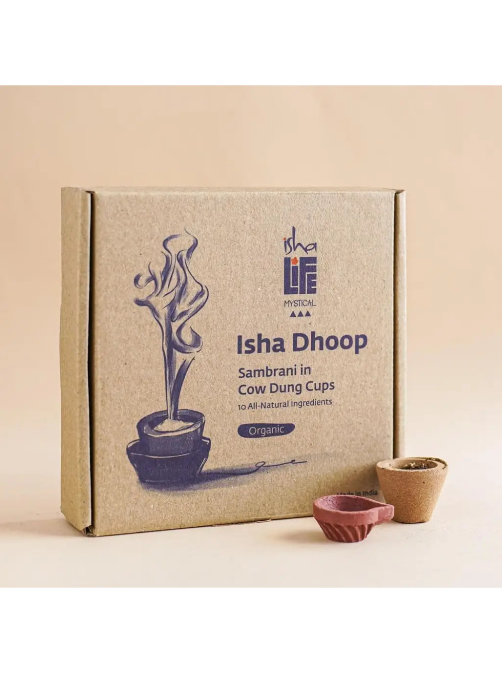 Самбрани/Лобан ручной работы с чашечками из коровьего навоза (12 шт)., Иша Лайф; Handmade Sambrani/ Loban with cow dung cups (12 pcs), Isha Life