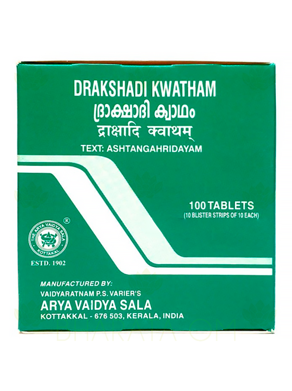 Например, похмелье, жажда, жжение, желтуха, носовое кровотечение, лихорадка, усталость и головокружение могут быть сняты этим препаратом. Следует отметить, что «Дракшади Кватхам» снимает лихорадку, причиной которой является дисбаланс вата и питта-дош.
