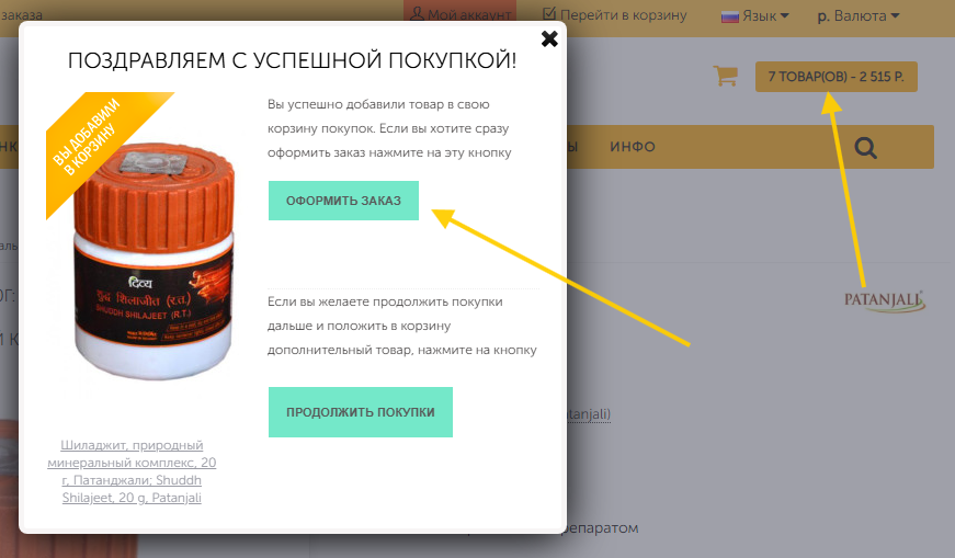 1. Добавьте товар в корзину