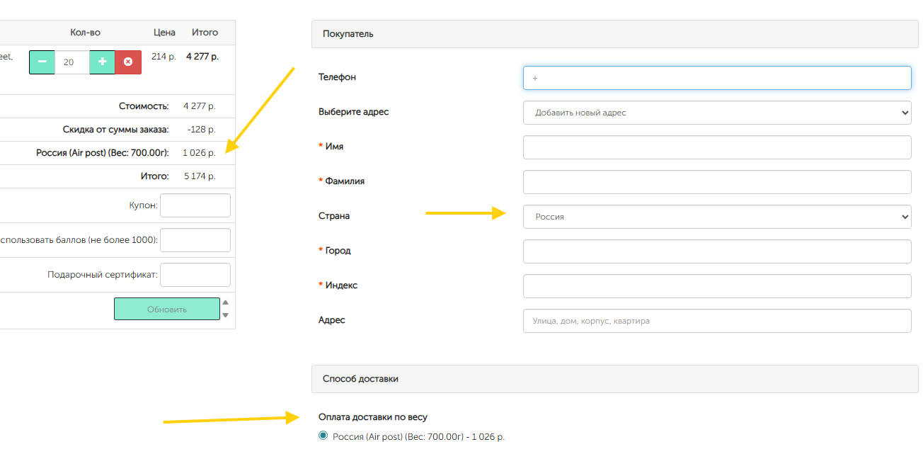 Чтобы точнее понять, как все это работает, поэкспериментируйте в корзине заказа.