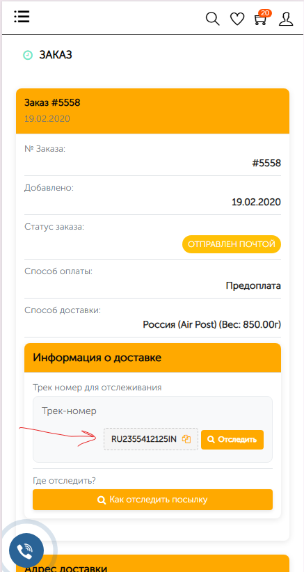 Отслеживание заказа