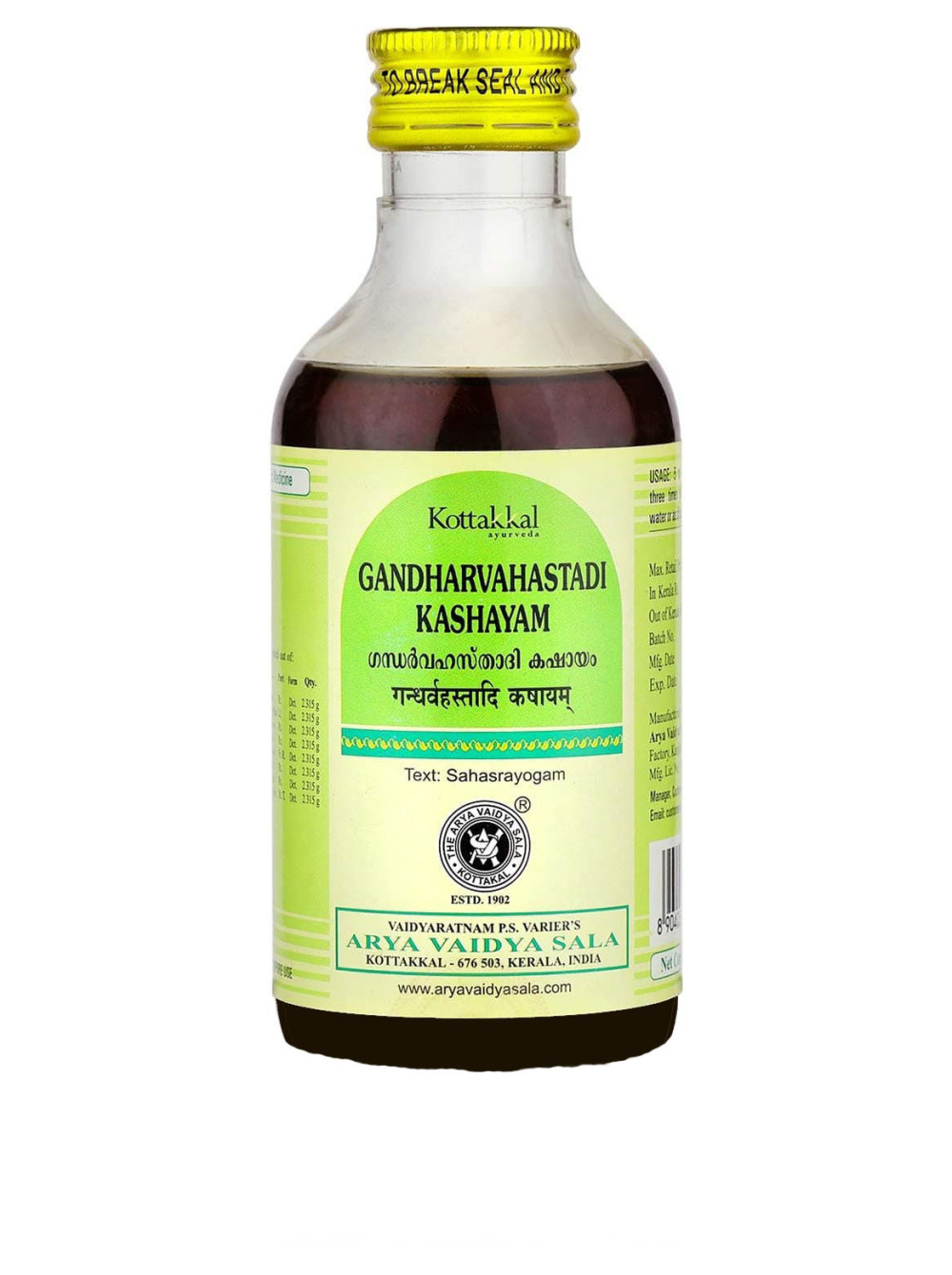 Состав: Gandharvahasta – castor seed – Ricinus communis, Chirabilva – Holoptelea integrifolia, Hutasha – Chitraka – Plumbago zeylanica, Vishwa – Ginger – Zingiber officinalis, Pathya – Terminalia chebula, Punarnava – Boerhaavia diffusa, Yavasa – Alhagi pseudalhagi, Bhumitaala – phyllanthus niruri.