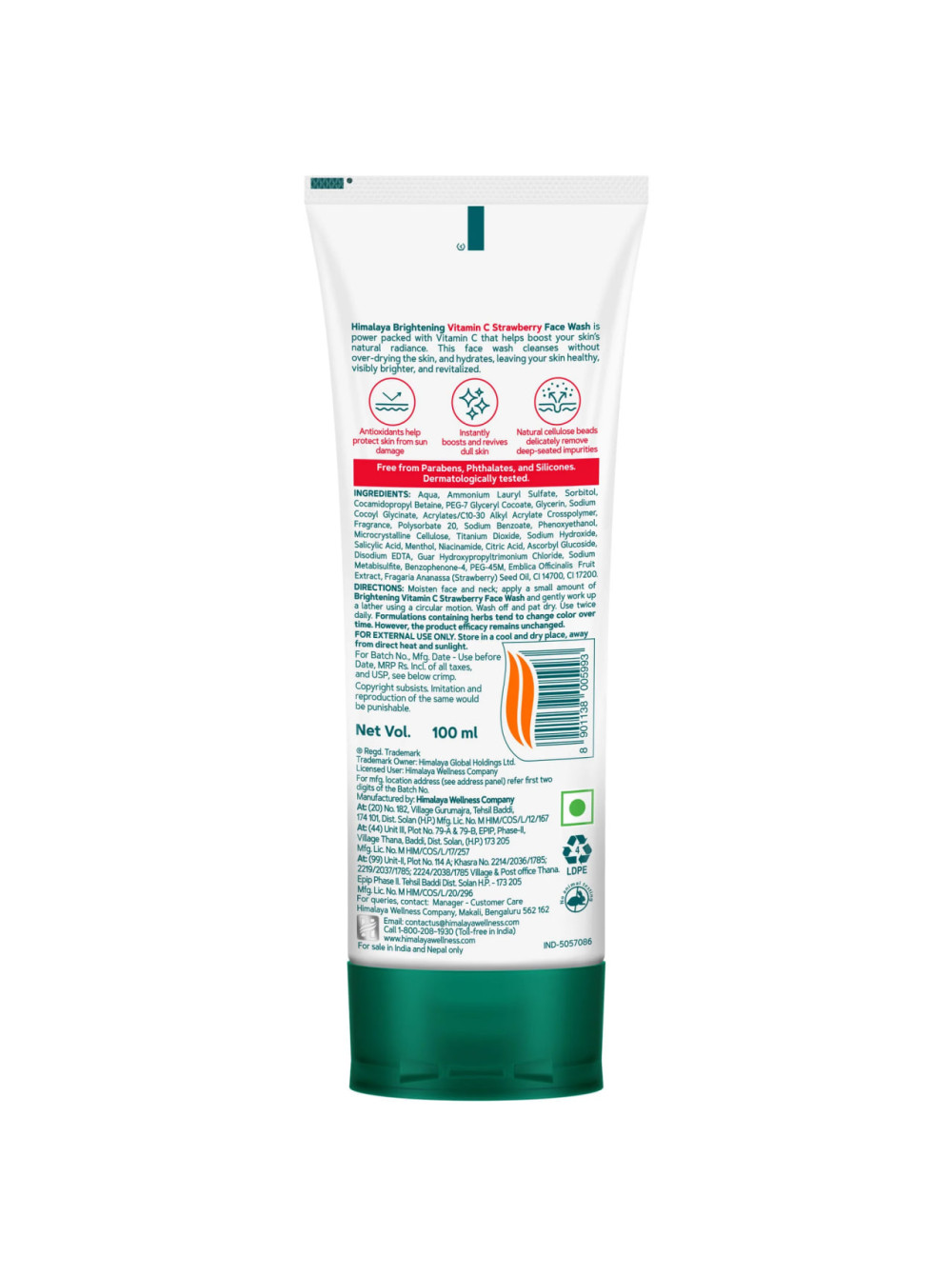 Осветляющее средство для умывания с клубникой и витамином С Himalaya насыщено витамином С, который помогает усилить естественное сияние кожи. Средство для умывания очищает кожу, не пересушивая ее, и увлажняет, делая кожу здоровой, заметно более яркой и обновленной.