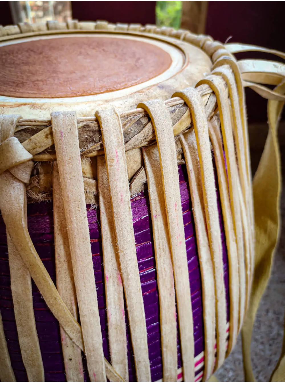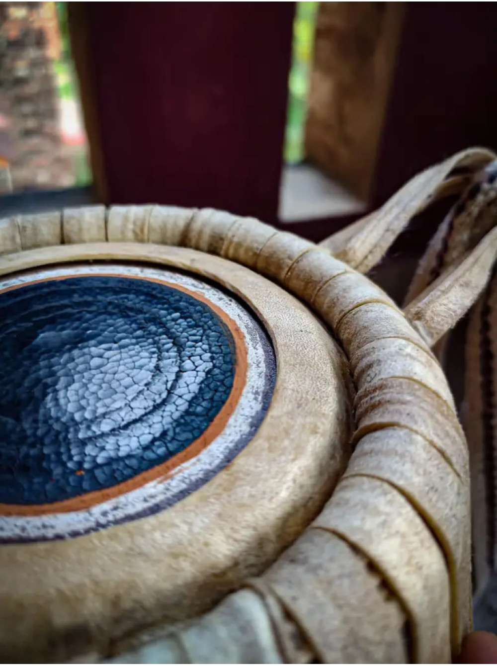 Это лучший вариант для алтарной комнаты, домашней намахатты или даже выездных харинам. Качественная черная масала на маленькой мембране и коричневая на большой. По желанию черную масалу можем нанести на обе мембраны.