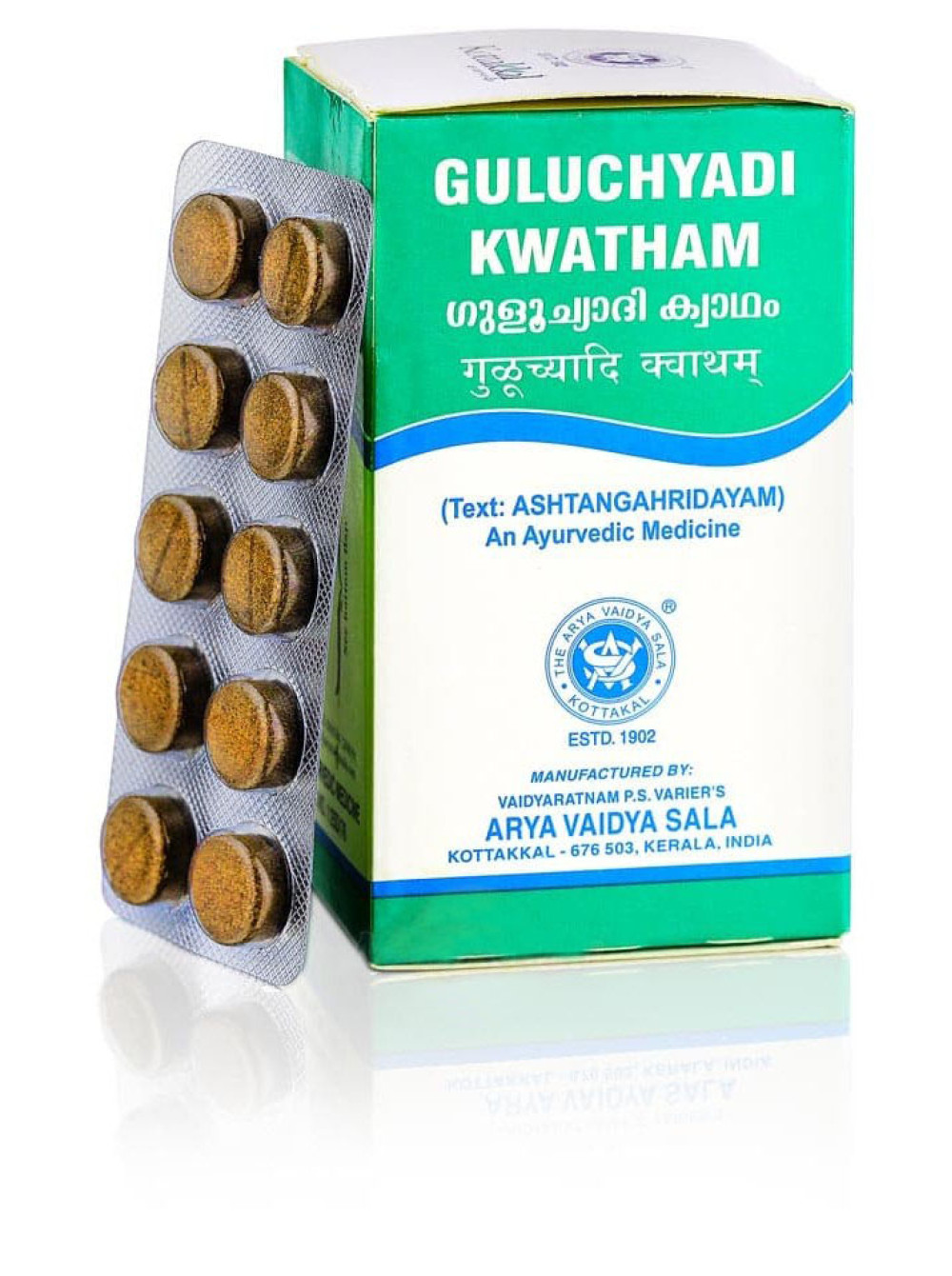«Гулучади Кватхам» – средство для лечения лихорадки любого типа, в том числе аллергической, а также для избавления от некоторых кожных болезней.