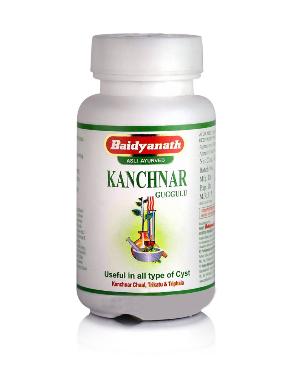Kanchnar guggulu (Канчнар гуггул) Baidyanath (байдьянатх) – натуральный аюрведический препарат для нормализации работы лимфатической и эндокринной систем. Его используют во время лечения увеличенной щитовидной железы, приводит в норму выработку гормона и уменьшает зоб, так же Kanchnar guggulu (Канчнар гуггул) эффективен при лечении варикоза и геморроя.