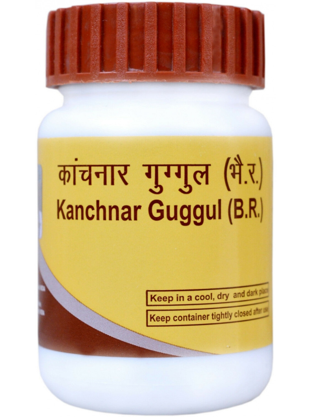 Состав Канчнар Гуггул: Баухиния (Bauhinia variegate), Имбирь (Zingiber officinale), Пиппали (Piper longum), Черный перец (Piper nigrum), Харитаки (Terminalia chebula), Бибхитаки (Terminalia belerica), Амла (Emblica officinalis), Варун (Crataeva nurvala), Патра (Cinnamomum tamala), Коричник цейлонский (Cinnamomum zeylanicum), Кардамон (Cardamomum), Гуггул (Commiphora mukul), Топленое масло гхи (Ghee), Клещевина обыкновенная (Ricinus communis).