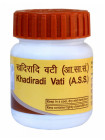 Состав Кхадиради Вати: Акация катеху (Acacia catechu), Голубой лотос (Blue lotus), Фисташка (Pistacia integerrima), Восковница прудная (Myrica esculenta), Клеродендрум сжатый (Clerodendrum serratum), Харитаки (Terminalia chebula), Лаванда (Lavandula angustifolia), Имбирь (Zingiber officinale), Перец чёрный (Piper nigrum), Перец длинный (Piper Longum), Борец разнолистный (Aconitum heterophyllum), семена Кумина (Cuminum cyminum), Карбонат калия (Potassium carbonate), Тиноспора сердцелистная (Tinospora cordifolia), Паслён индийский (Solanum indicum), Паслён желтоплодный (Solanum surratense), Бибхитаки (Terminalia bellerica), Кхайсар (Acaela catecha), Мускатный орех (Myristica fragrans), Перец кубеба (Piper cubeba), Бетельный орех (Areca catechu), Карпура / Борнейская камфора (Dryobalanops aromaticum).