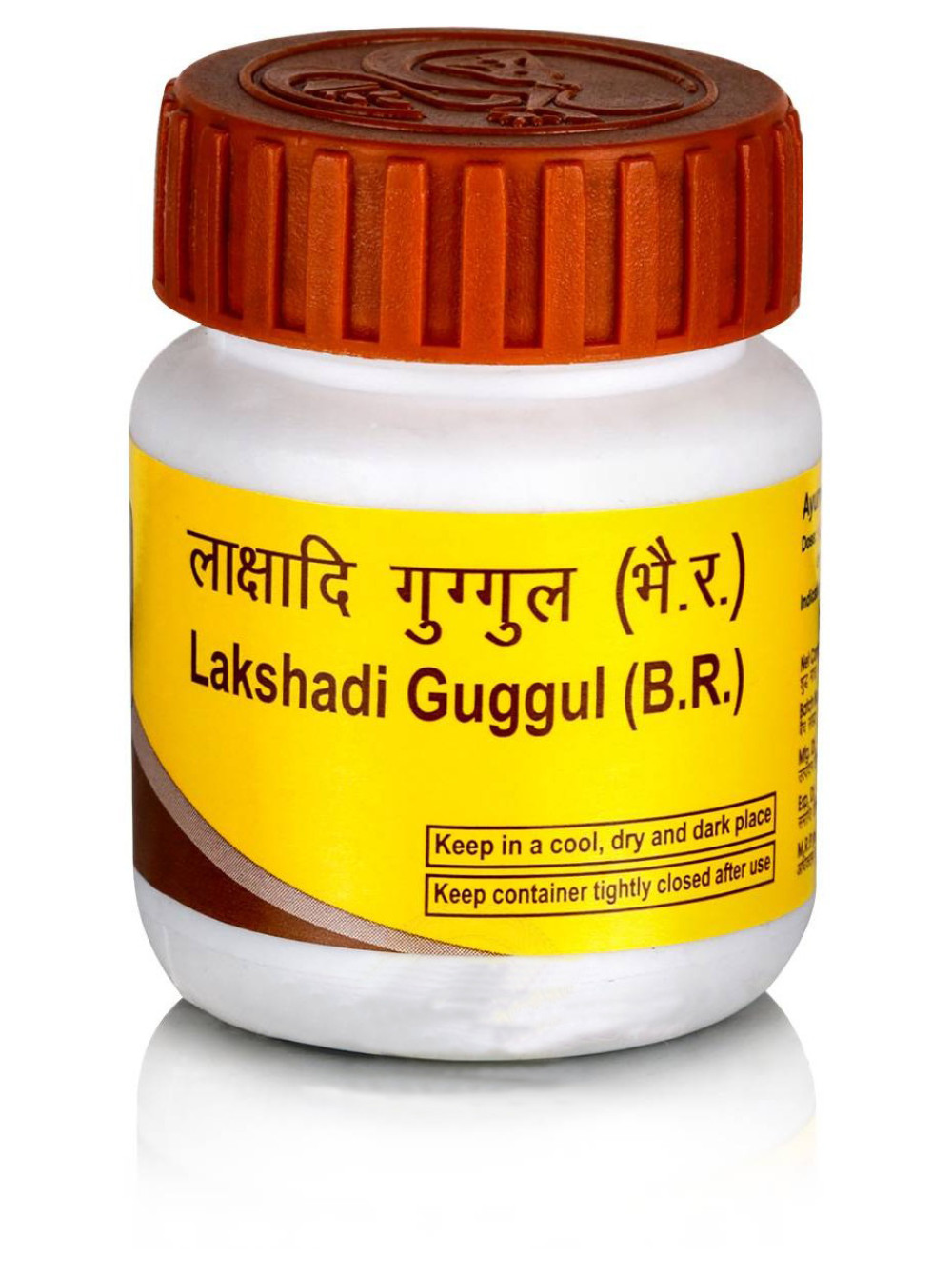 Состав Лакшади Гуггул: Гуггул (Commiphora mukul), Смола лакового червя (Laccifer lacca), Циссус четырёхугольный (Cissus quadrangularis), Арджуна (Terminalia arjuna), Ашвагандха (Withania somnifera), Нагбала (Grewia hirsuta).