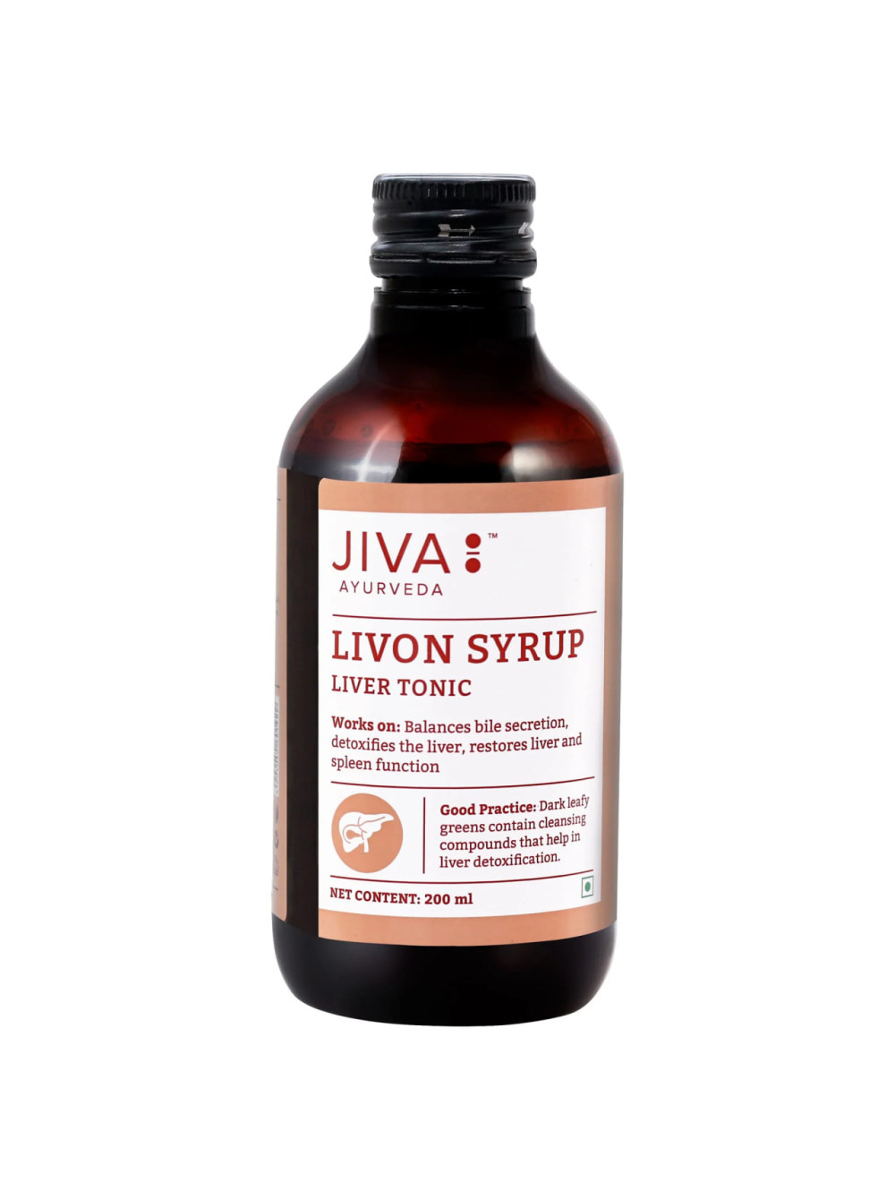 Ливон сироп от Jiva Ayurveda – это натуральный тоник для печени, разработанный врачами Jiva для поддержания здоровья и нормального функционирования печени. Формула сиропа включает мощные аюрведические травы: Касни, Сарпонха, Пунарнава, Макои и Кутки. Благодаря уникальному составу, Ливон Сироп оказывает многостороннее воздействие на печень, ее функции и заболевания, вызванные нарушениями ее работы. Он эффективно детоксифицирует печень и стимулирует выработку желчи. Травы в составе тоника хорошо справляются с желтухой, печеночным абсцессом, застойными явлениями и жировым гепатозом, а также с нарушениями функции печени и селезенки. Кроме того, Ливон Сироп способствует улучшению пищеварения (укреплению «агни»), повышает метаболизм и нормализует стул.