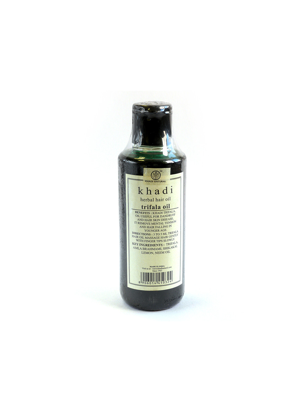 Масло трифалы (Triphala). Лечебный состав из трех лечебных трав (амалаки, харитаки, бибхитаки) при наружном применении укрепляет волосы и ногти, ускоряет их рост. Предотвращает раннюю седину, способствует избавлению от перхоти и зуда головы.