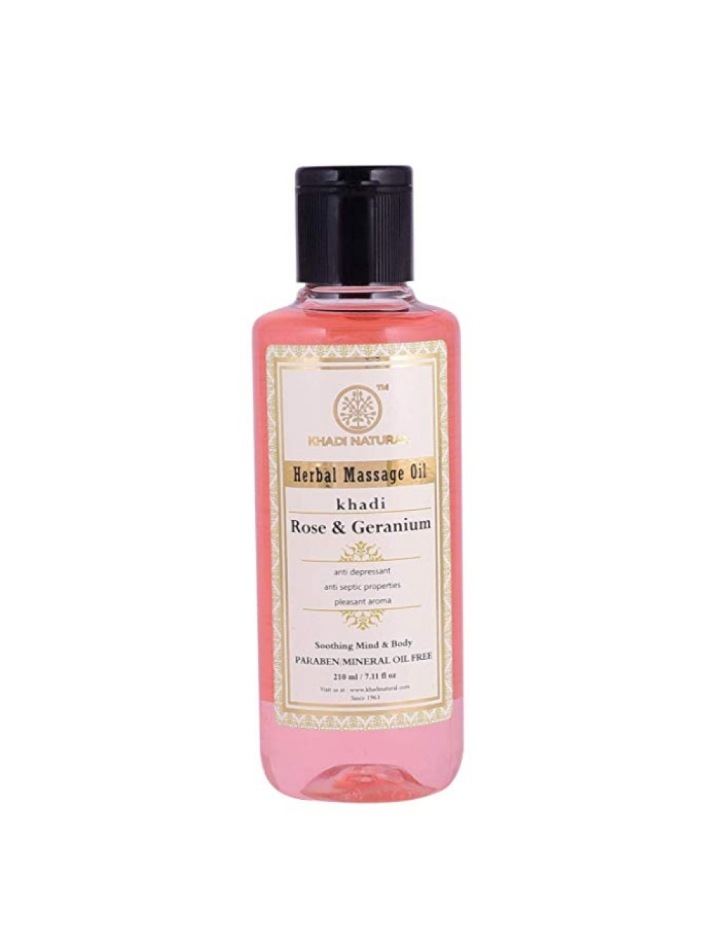 Массажное масло Роза и Герань Khadi Herbal Massage Oil Rose & Geranium - эффективное средство для релаксации и улучшения общего состояния организма. Масло Розы обладает сильным успокаивающим действием. Вечерний массаж помогает снять нервную и физическую усталость. Масло особенно показано для спортсменов, при значительных физических нагрузках и восстановлении после травм.