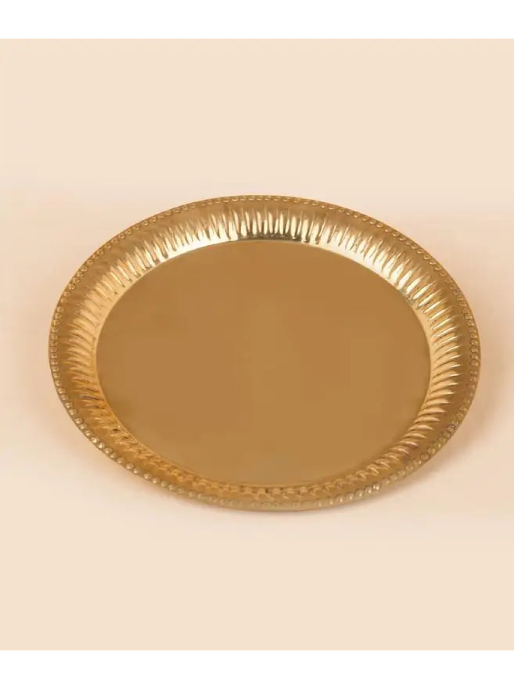 Медный поднос Саннити от Иша Лайф – это изысканное дополнение к вашему пространству для пуджи, излучающее аутентичность и духовную гармонию. Этот большой поднос, выполненный из высококачественной латуни, идеально подходит для размещения ваших подношений во время Гуру Пуджи или Саннидхи Пуджи. Традиционный дизайн подноса Саннити, украшенный сложным орнаментом по краям, привносит в ритуал этнический колорит и создает атмосферу благоговения.