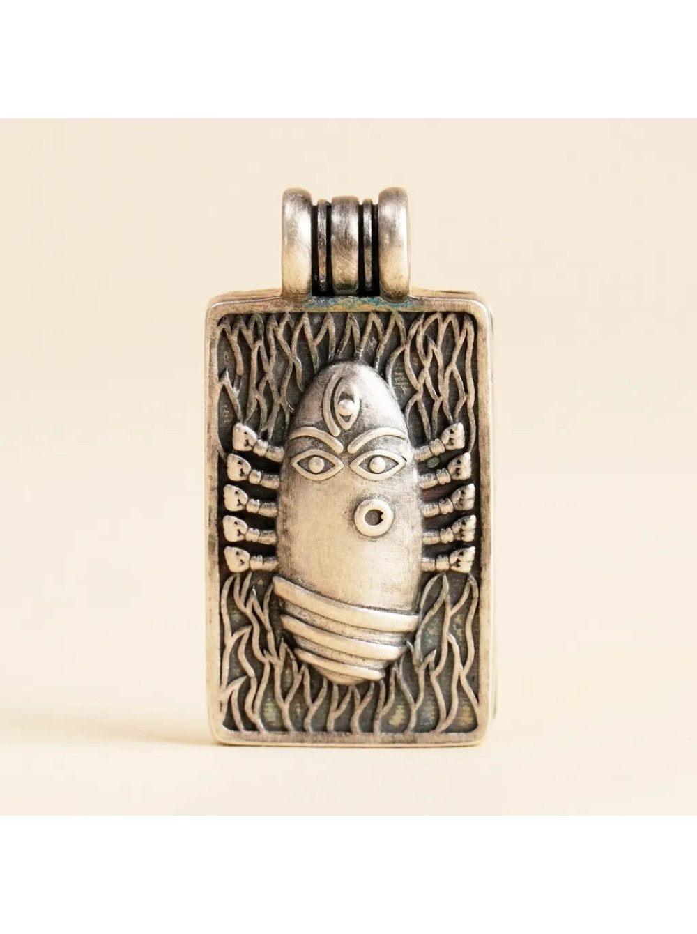 Искусно изготовленный из серебра, кулон красиво представляет Линга Бхайрави во всей ее огненной грации и свирепом сострадании. На обратной стороне изображена священная Янтра Деви, служащая постоянным источником связи с ее присутствием.