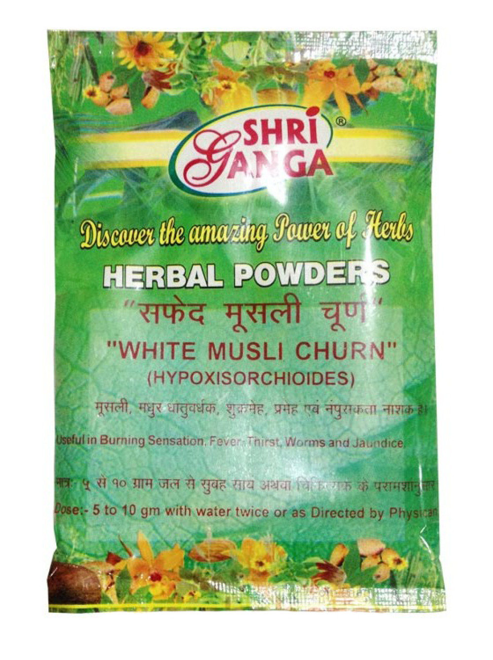 Мусали Чурна – натуральный препарат, обладающий выраженными свойствами афродизиака. Тонизирует и восстанавливает энергетические ресурсы, так как имеет высокопитательные свойства. Поддерживает организм при физических и психических нагрузках. Повышает стрессоустойчивость. Родственен по своему воздействию с препаратами другого популярного афродизиака, Шатавари, поэтому хорошо с ним сочетается. Их совместное применение значительно увеличивает тонизирующий и восстанавливающий эффект обоих средств.