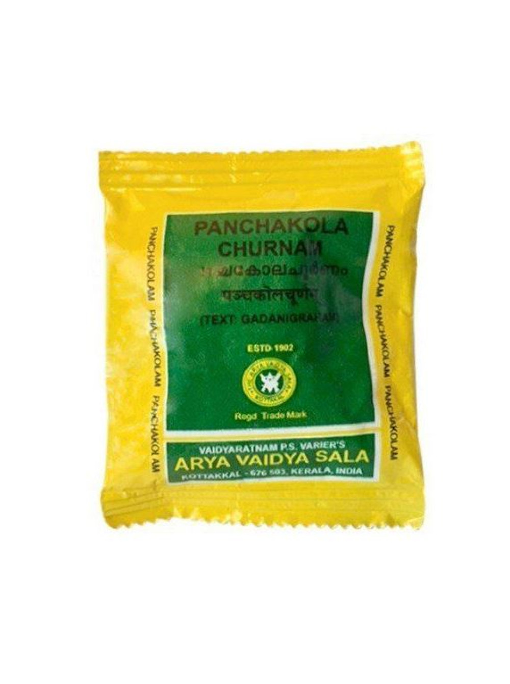 Эта чурна традиционно назначается аюрведическими врачами при заболеваниях, вызванных накоплениями шлаков и токсинов (амы) в организме, в качестве профилактики и на начальной стадии ревматоидного артрита (амавата), а также при лечении других заболеваний Вата-типа. Панчакола чурна очищает кишечник и нормализует его работу, устраняет застойные явления в тканях, оздоравливает организм, придаёт телу лёгкость, улучшает все метаболические процессы, обостряет вкусовое восприятие.