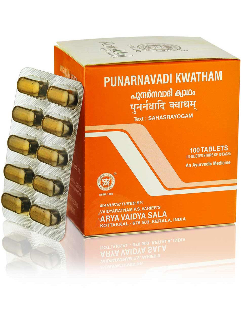 Состав: Punarnava – Boerhaavia diffusa – 1,389g, Nimba – 1,389g, Patola – 1,389g, Sunthi – 1,389g, Tikta – 1,389g, Amrita – 1,389g, Darvi – 1,389g, Abhaya – 1,389g.