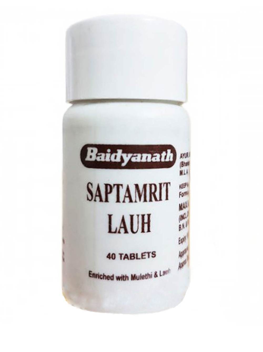 Саптамрит Лаух - эффективная расаяна, он эффективен при анемии, омолаживает организм. Кроме заболеваний глаз, препарат используется для лечения заболеванияй органов слуха, горла, десен и зубов. Он так же способен улучшить цвет волос, особенно при преждевременной седине. Саптамрит Лаух рекомендуется при повышенной кислотности и боли в животе.