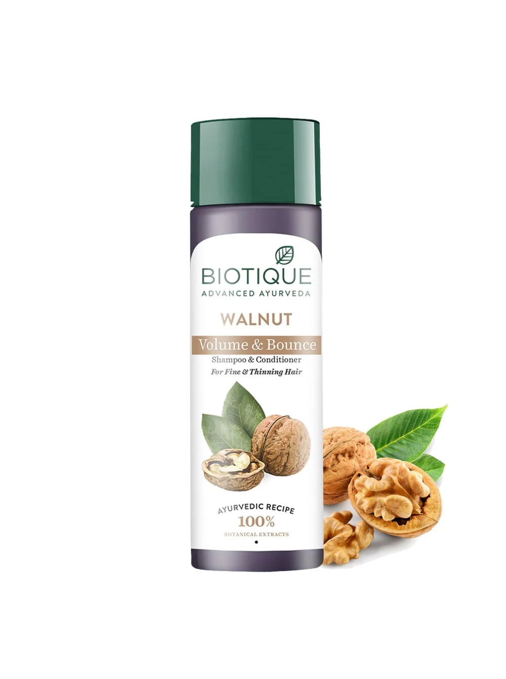 Шампунь-кондиционер с грецким орехом (Walnut Volume & Bounce Shampoo & Conditioner) – натуральное средство, разработанное для увеличения объема и улучшения структуры волос. Благодаря активным компонентам, таким как эклипта, мыльный и грецкий орехи, шампунь бережно очищает волосы, укрепляет волосяные луковицы, восстанавливает повреждения и предотвращает выпадение.