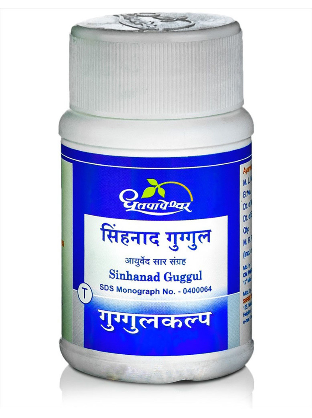 "Синханади Гуггул" – это смесь порошка трифалы, коммифоры, серы и касторового масла в определенных пропорциях. "Синханади Гуггул" назначается при заболеваниях, вызванных токсинами в организме. В этом случае человек становится тугоподвижным, ощущает тяжесть в теле, процесс пищеварения замедляется и нарушается работа ЖКТ в целом.