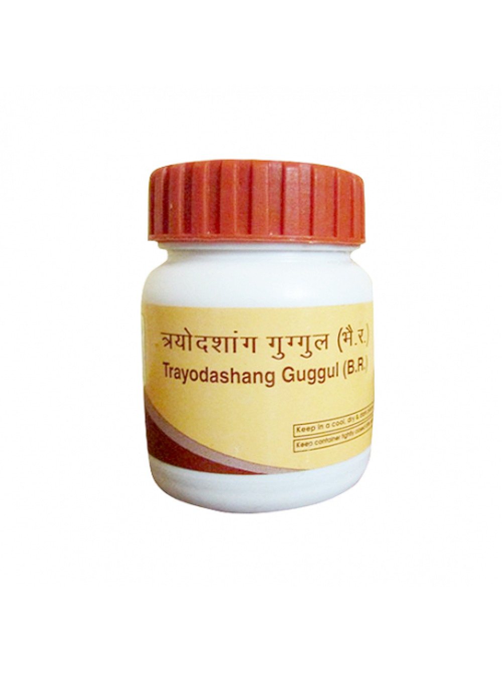 Состав Трайодашанг Гуггул: Акация аравийская (Acacia Arabica), Ашвагандха (Withania somnifera), Можжевельник обыкновенный (Juniperus communis), Гудучи (Tinospora condifolia), Шатавари (Asparagus racemosus), Гокшура (Tribulus terrestris), Аргирея красивая (Argyreia speciosa), Плюхея остролистная (Pluchea lanceolata), Фенхель (Foeniculum vulgare), Куркума цедоария (Curcuma zedoaria), Аджван (Trachyspermum ammi), Имбирь (Zingiber officinale), Гуггул (Commiphora mukul), Топлёное масло (Ghee).
